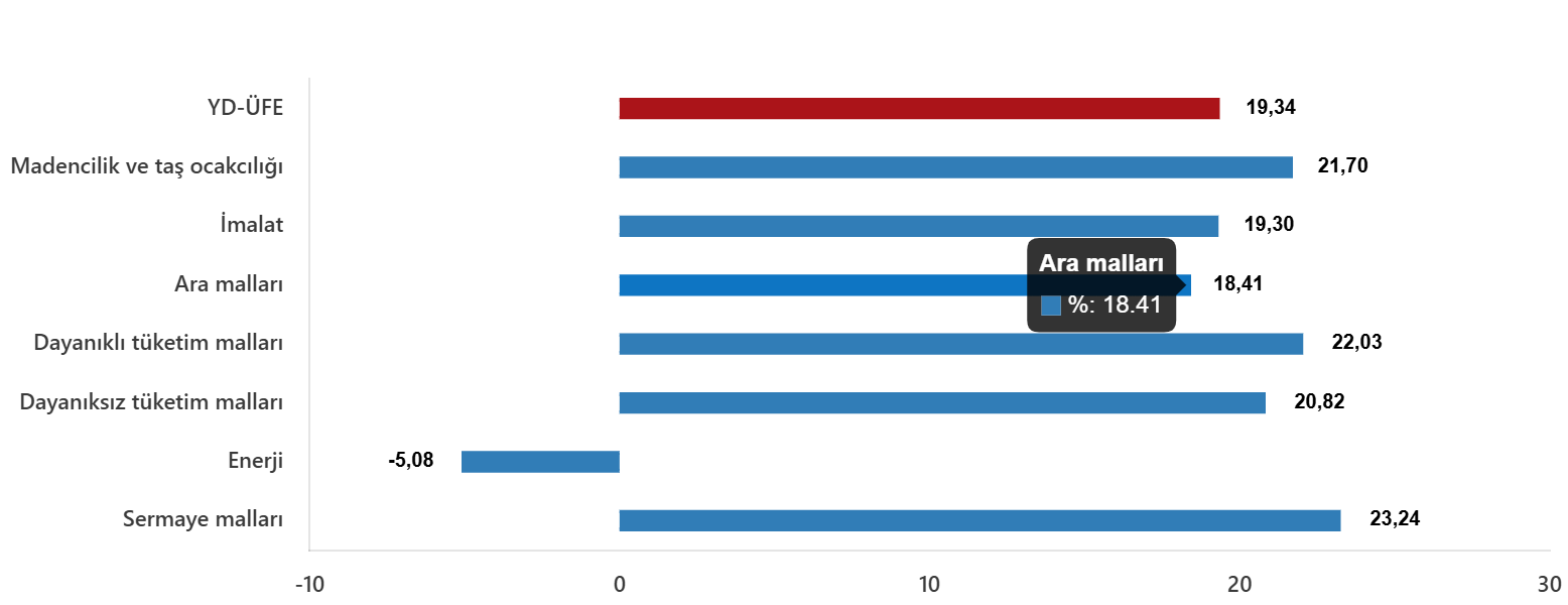 Yurt Dışı Üretici Fiyat Endeksi (YD-ÜFE) yıllık %19,34 arttı, aylık %4,06 arttı